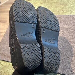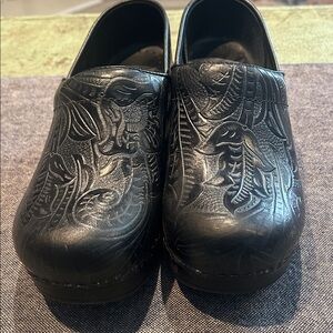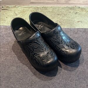 Dansko Black Embossed Leather Clogs Size 37 US 6.5–7 Comfort Work Shoes