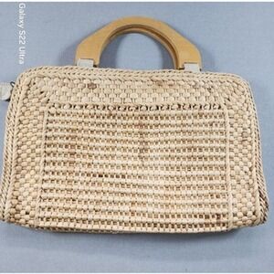 Vintage Made in Italy Straw Bag Wood Handle Quiet Luxury Garfinckel's Boho zzz