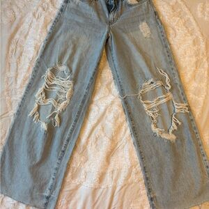 Forever 21 High Rise Wide Leg Distressed Jeans Size 24 in/ equivalent to 0