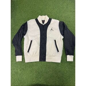 Nike Air Jordan Flight Bomber Jacket Mens Large Black White Loose Fit Full Zip.