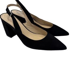 Marc Fisher Women’s Black Suede Slung Back Block Heel Pumps Size 8.5 NEW