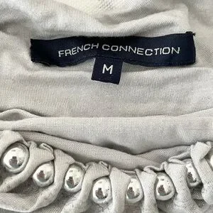 French Connection Mod Silver Halter Glam Boho Blouse w/ Beaded Detail – Medium