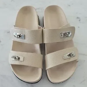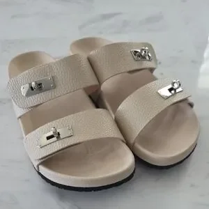 Step out in style with these elegant cream sandals featuring chic silver accents. Perfect for any occasion.