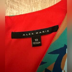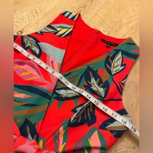 Alex Marie Bold Red Tropical Dress Sleeveless Belted Ruffle 10