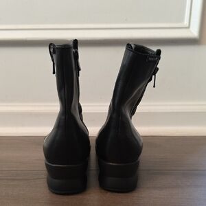 Stylish black boots with a comfortable wedge. Perfect for winter wear. Features a side zipper for easy access.