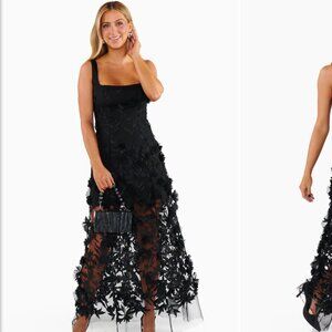 NEW NWOT Show Me Your Mumu Stephanie Dress Black 3D Floral Embroidery is such a stunning piece! This sleeveless dress is lined to a mini length and then sheer to a maxi length. Back zip closure. 100% polyester. Made in the USA!