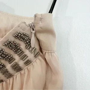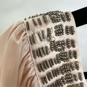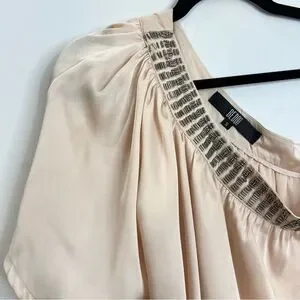 BEDO Femme blush satin beaded neckline one shoulder top S