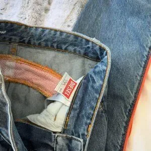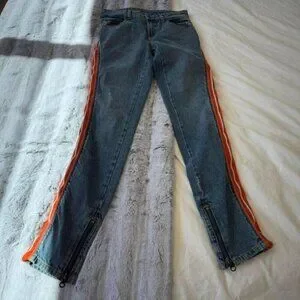 Size 25. Excellent condition. Small tear of orange fabric at the bottom ankle by seam.