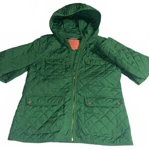 New J.Crew Signature Puffer $200 Womans Small Quilted Green Hooded Jacket luxury