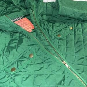 New without tags unworn. $200 retail! J.Crew Signature puffer jacket in a vibrant green color. Features recycled, water-repellent shell fabric and recycled PrimaLoft insulation for lightweight warmth. Quilted design with a hood and front zipper closure. Includes four front flap pockets with snap buttons. Perfect for staying warm and stylish during cooler weather.