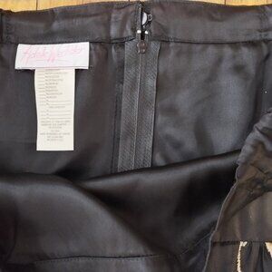 Vintage black A-line skirt - Adele Wechsler brand, embroidered with pink flowers and green leaves.