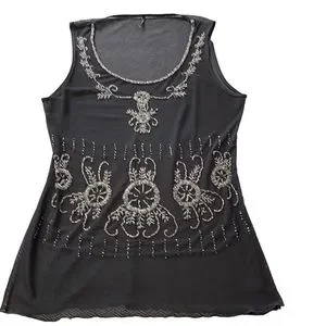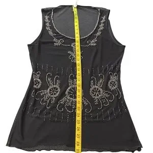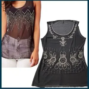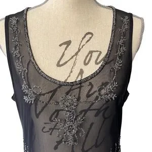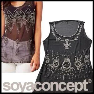 Soyaconcept Dark Grey Sheer Silver Beaded Tank (L)