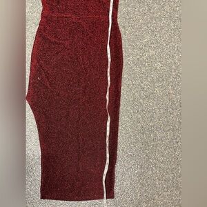 Red Floor Length One Shoulder Dress with Shimmer and Side Slit, XL