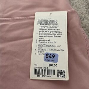 Lululemon NWT align high rise shorts