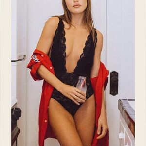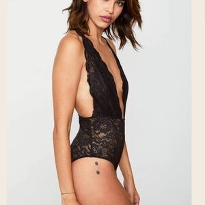 Lace deep V-neck bodysuit