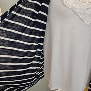 inKim Rogers Petite, women's size PXL navy and white striped cardigan with a white shirt attached. It is new with tags.
