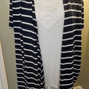 Kim Rogers Women's Size PXL Navy and White Striped Cardigan with Shirt New