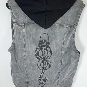 Harry Potter Death Eater Denim Jean Vest Gray Hoodie Men's M