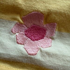 Vintage Y2K Blues Clues Embroidered Yellow Stripe Dress Skirtall size 3T. Good used condition, small mark on right side of front of dress, a few small embroidery pulls. Flowers and Blue on a bike are embroidered on the front. Cotton and polyester knit in white and yellow stripes. Shoulder strap buttons with 2 different lengths. Size 3T; Measures 19” long at longer strap button adjustment, 12 1/4” wide at waist. Has 2 side buttons as well. Please see photos and condition.