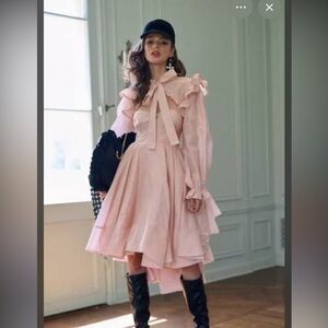 This elegant pink dress and bolero combination is perfect for going out or staying and having a cup of tea! Beautiful rose detail in the front and can bunch in the back. Only been tried on 2 twice.
