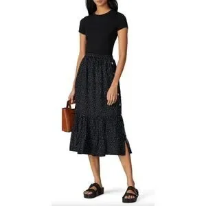 NWOT Coach Tiered Midi Skirt with Snaps Ruffle Hem Dots Multicolor Silk Size 6