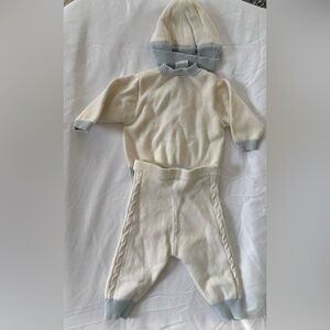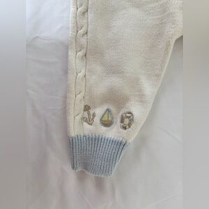• Sailboat embroidery on sweater, pants and hat.
