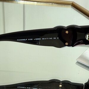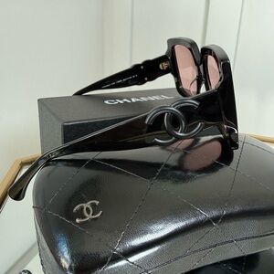 Sophisticated CHANEL sunglasses with a bold black frame. Features stylish tinted lenses for a modern look.