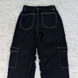 Forever 21 Twill Mid Rise Carpenter Cargo Wide Leg Pant Denim Women's XS Black