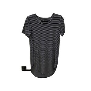Women's crew neck long tunic top; Stretch; Navy/white stripes; Size Small