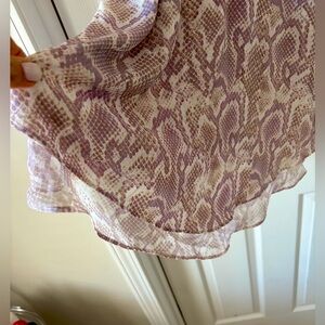 Fun and Flirty Lavender snake print dress. Features a flattering fit and v-neckline. silver detail on the neckline. Layered Hem. NWOT