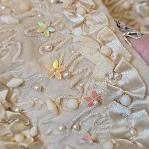 Such an eye-catching skirt. Perfect for any occasion with any outfit. Fully lined. Back zipper. Waist measures approximately 13". Length measures approximately 16". The beadwork is stunning. Worn but in great condition except for few beads missing...see pic.