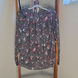 3 long sleeve blouses - cream, grey print, burgundy print
