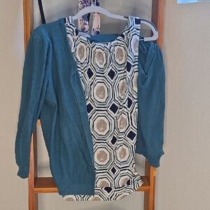 2 short sleeve blouses w/ 1 cardigan
