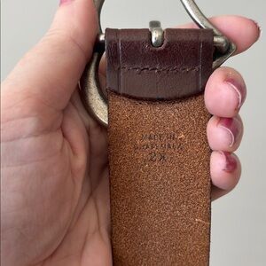 Stylish brown leather belt featuring a unique heart-shaped silver buckle. Perfect for adding a touch of elegance to any outfit. 42-46” waist marked women’s 2X.