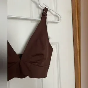 NWT Re New bra from Everlane in a size small. This bra is in the color Dark Tan which is a deep dark brown color. Nice wide band along the bottom and a slightly thicker strap. Straps are adjustable. No stains or flaws!