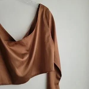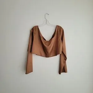 NWT Ryan Destine x PacSun Elegant Brown Satin Unbothered Off-The-Shoulder Crop Top