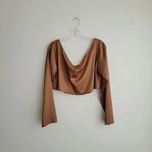 NWT Ryan Destiny x PacSun Elegant Brown Satin Unbothered Off-The-Shoulder Top