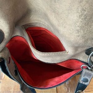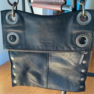 Fabulous Hammett crossbody. The bag can be worn cross or shorten strap and wear as shoulder bag. Strap is 22” length. Bag can be worn as black pebbled or tan front. In good condition with excellent pocket options . Modern and functional design. Ideal for daily use.