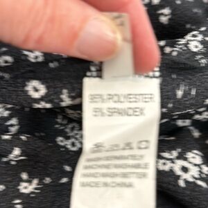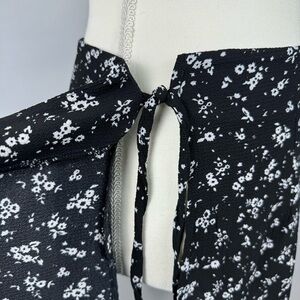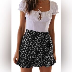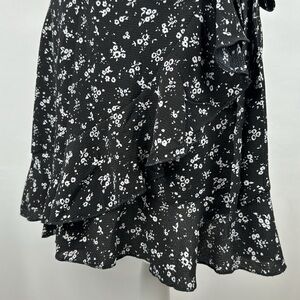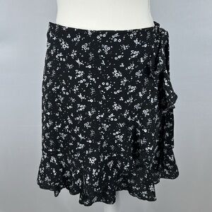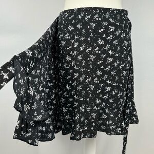 True Wrap Mini Skirt Ruffle Hem Lightweight Black White Ditsy Floral Print Small