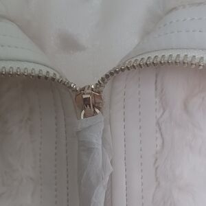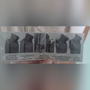 super soft and stylish. never worn. zipper still wrapped in tissue!sleeves zip off to create vest option. 2 inside pockets.