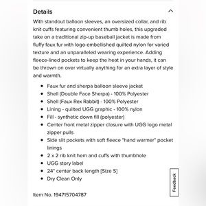Stylish UGG bomber jacket. Features vibrant red and deep purple colors. Cozy and fashionable design. I’m szM to L and this fits perfectly but if u like oversized might want to get M