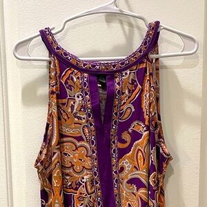 NWOT…Elevate your style with this chic purple and orange paisley top. We love the effortlessly glam vibe of this International Concepts' top. It's all about a breezy silhouette that shows a hint of skin on hot days (or nights). Halter neckline with keyhole.