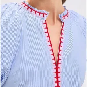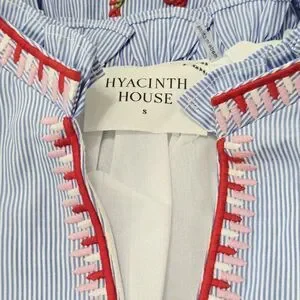 NWT Hyacinth House - S - Blue Pinstripe Embroidered V-Neck Lillian Mini Dress