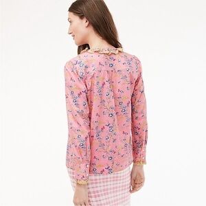 J. Crew Liberty Wheat Bouquet Pink Floral Blouse with Yellow Trim