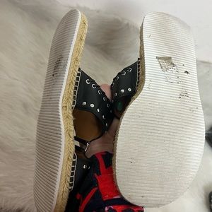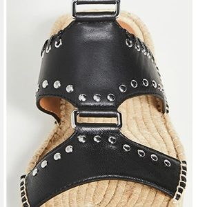 Leather Upper portion. Espadrille woven bottom. studded detail on the leather.