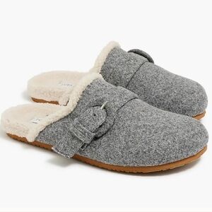 Womens J.Crew grey buckle slipper slides size 9. Gently worn. Still new looking. They can be worn outside with the soles that they have. Preppy. Loungewear. Streetwear. Travel.