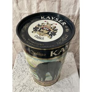 This VTG Julius Kayser tin container is perfect for collectors! It was originally used as a wine container and features a tall, black scared cat design, made in Germany.