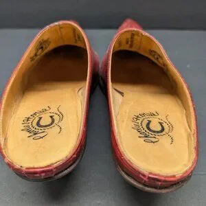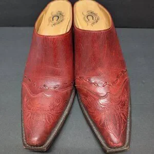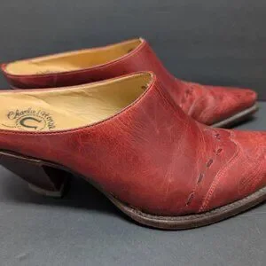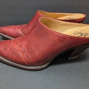 Elegant red leather ankle boots. Intricate stitching detail. Perfect for stylish outings.