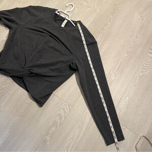 Excellent, actually, I would consider this to be in almost like new condition, with no rips or stains, ladies Lululemon Tuck & Gather Pullover in the lulu colour Heathered Mod Black, a beautiful dark gray colour. Ladies size 8, fresh, crispy rip tag attached, please see photos for exact measurements. Nice long arms, super flattering!