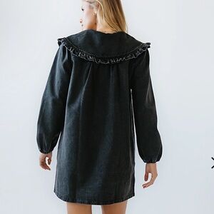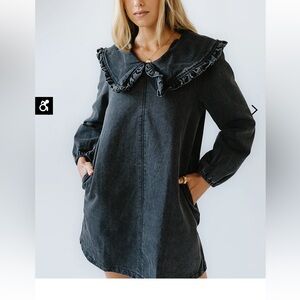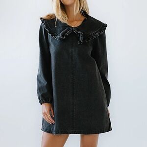 Elegant black dress with a charming ruffled collar. Perfect for any occasion.